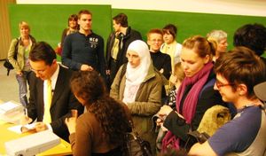 Misha Waiman at the Universities of Bochum and Dortmund From right to left: US Consul General Matthew Boyse, Prof. Kornelia Freitag, and Misha Waiman
